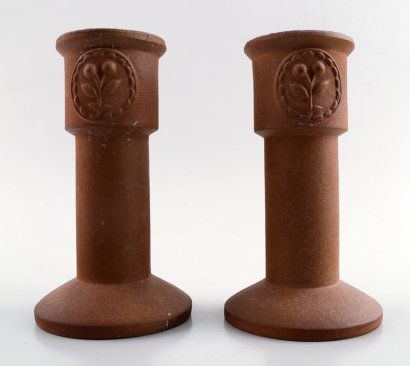 Gustavsberg. Et par lysestager i uglaseret stentøj.