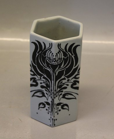 kr. 425 8744 Nymølle Sekskantet vase 12.5 cm 1987, sort