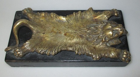 Bronze letter press on wooden plinth in the form of lion skins. 19th c. France.