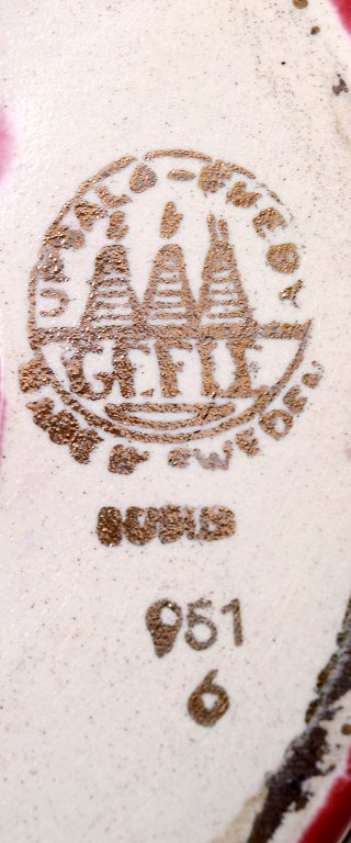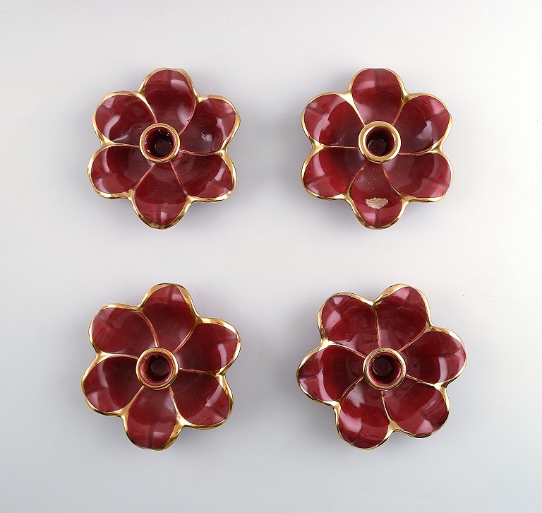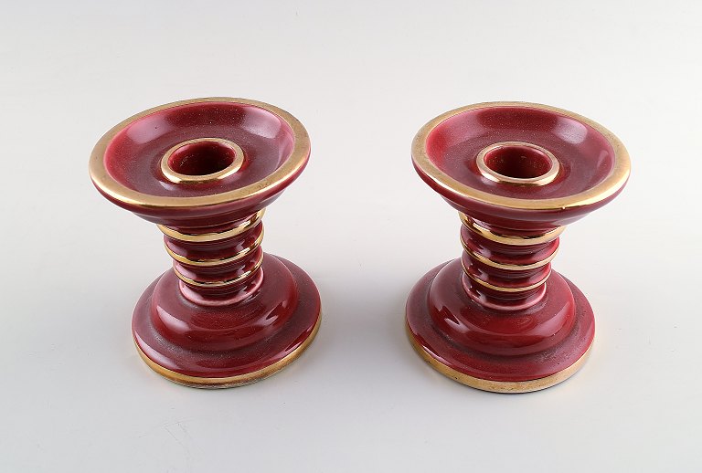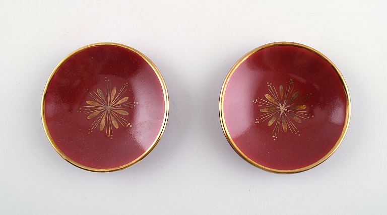 Samling 'Rød Rubin' af keramik med rød glasur med guldkant, fremstillet hos Upsala-Ekeby, Gefle. Design Arthur Percy.