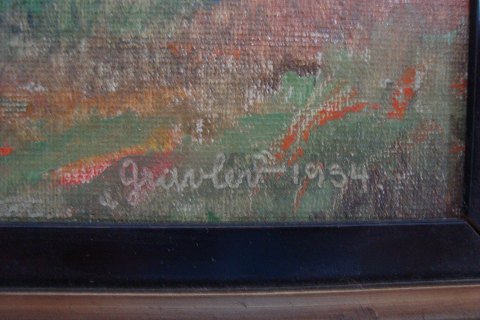 Maleri - Knud J. Clemmensen - Gravlev ved Skørping 1934.