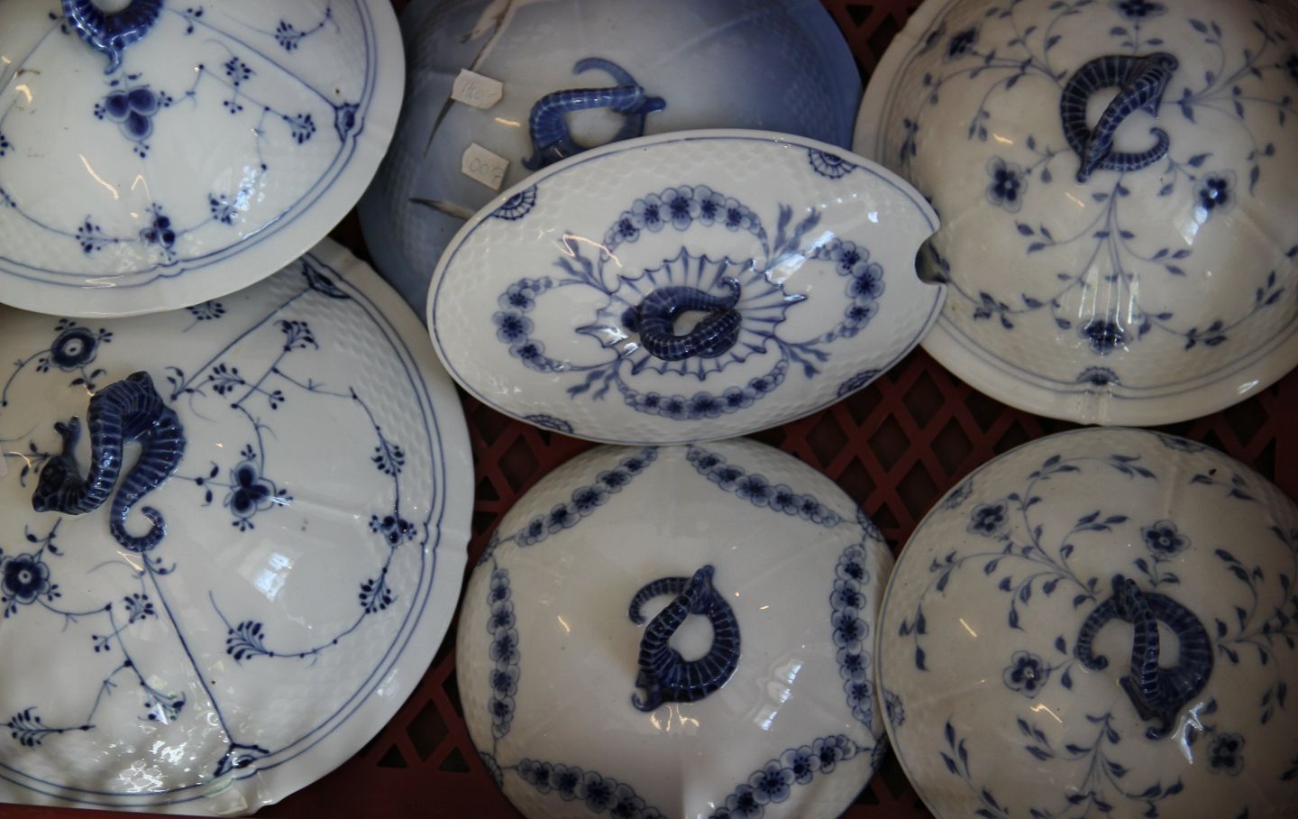 1 x B&G Blåmalet 003? Klokkelåg m søhest, skællet 22 cm/24,6 cn á kr. 650