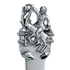 H.C. Andersen Eventyrbestik. 'Klodshans'. Børnebestik i sølv med motiv fra H.C. Andersens eventyr. L. 15 cm.