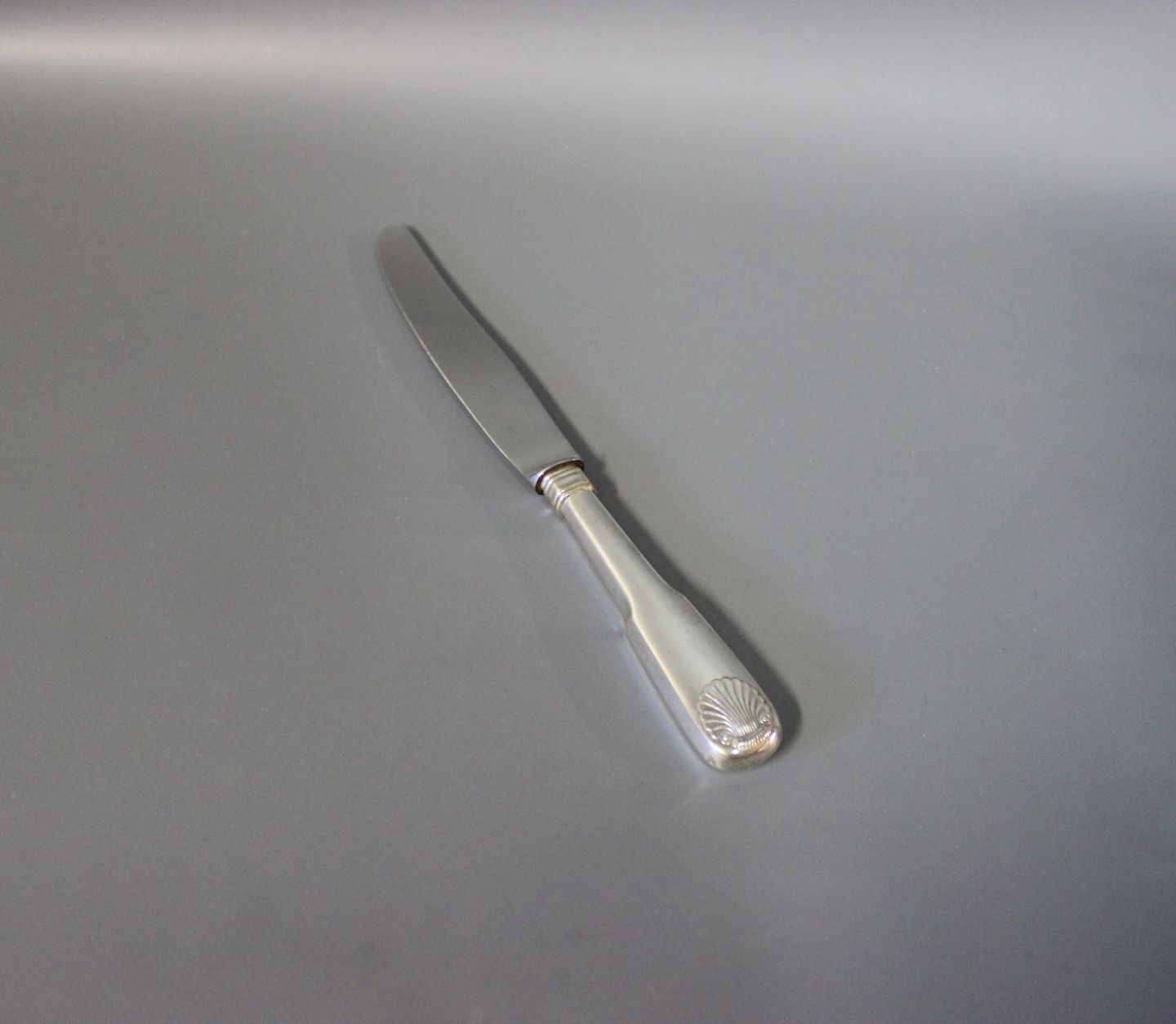 Middagskniv i musling, tretårnet sølv.