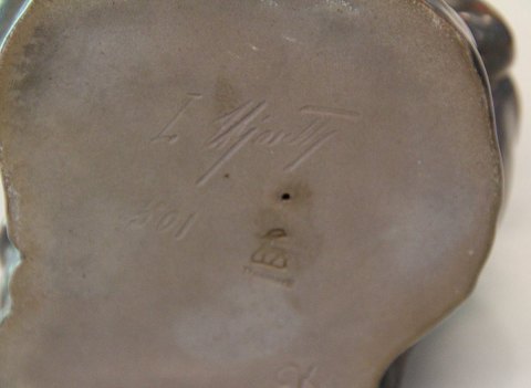 L. Hjorth 501 Neptun med fisk og trefork 25 x 14 cm Gertrud Kudielka GK, Bornholm