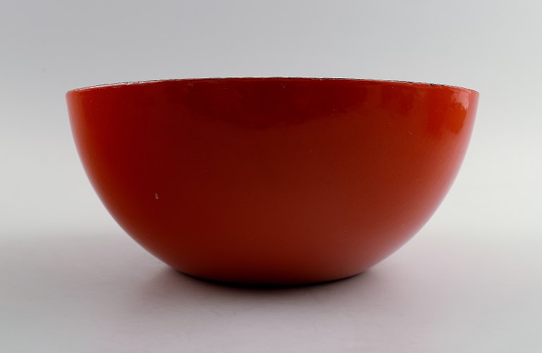 3 red bowls in enameled metal, Finel, Finland, 1950s.