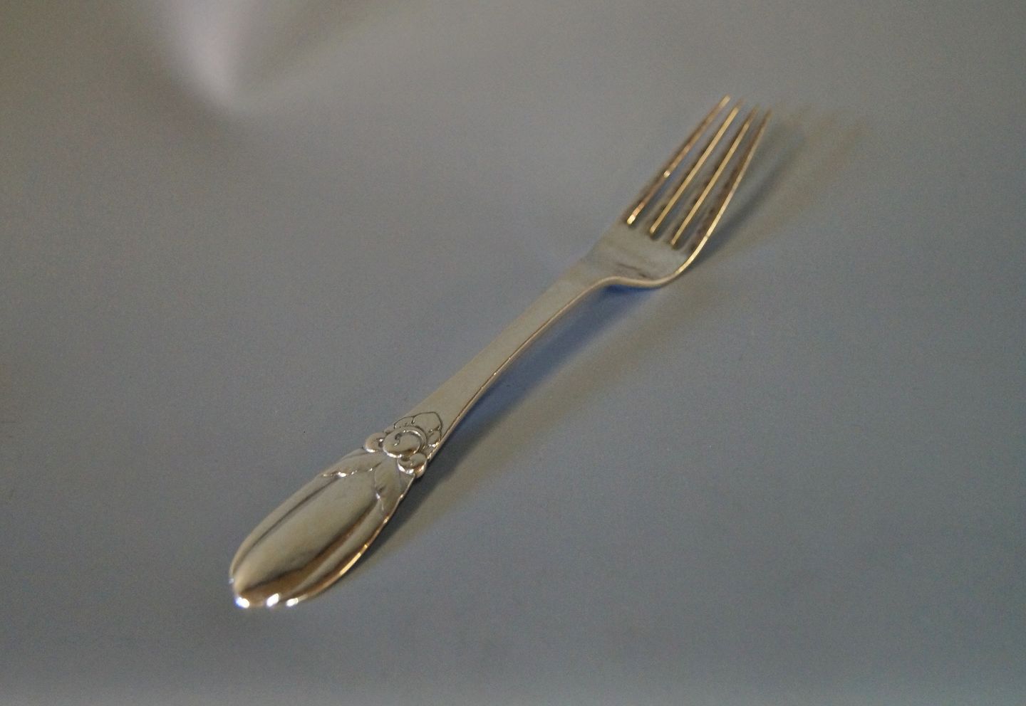 Middagsgaffel nr. 16 af Evald Nielsen, tretårnet sølv.