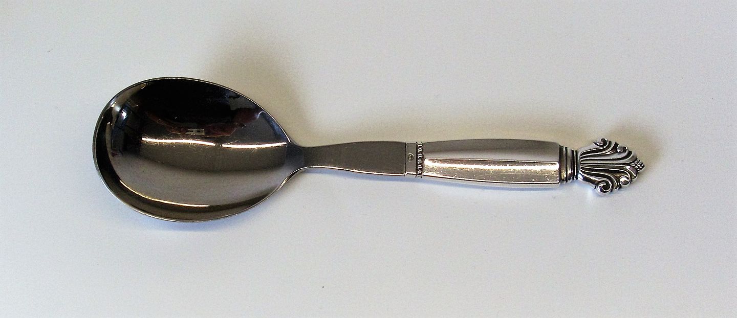 Georg Jensen Dronning stor serverings ske med laf af stål.
