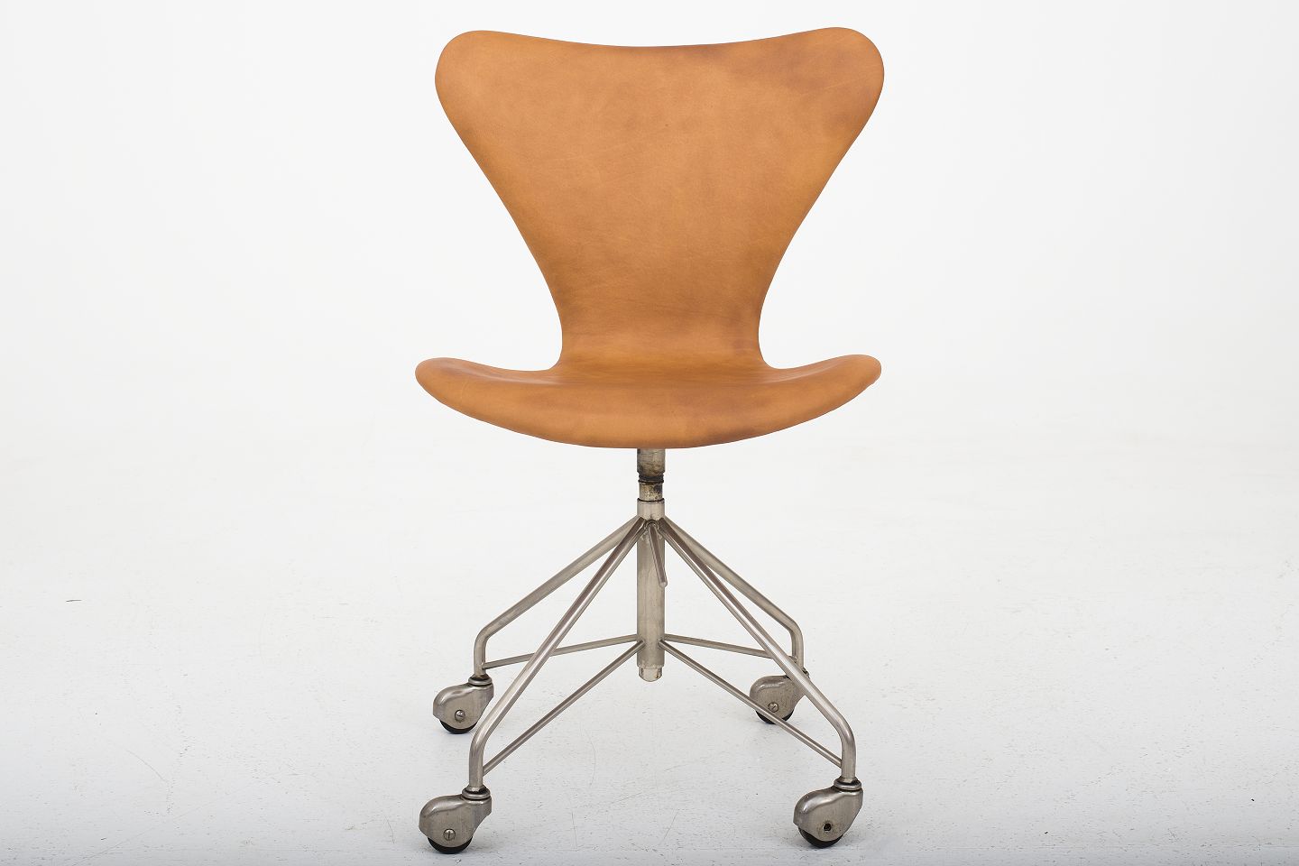 AJ 3117 - Kontorstol, nybetrukket med Dunes Cognac-læder