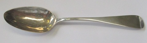 Sølv ske, Hinrich Henningsen Schmidt (1766 - 1825), Tønder, Danmark. Stemplet med mestermærke og bymærke. L.: 21,5 cm.