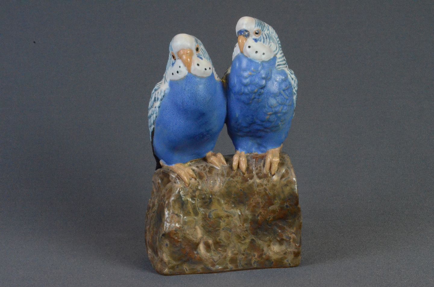 Stentøj: Par undulater, h: 15 cm, OBS personnummer graveret i bund