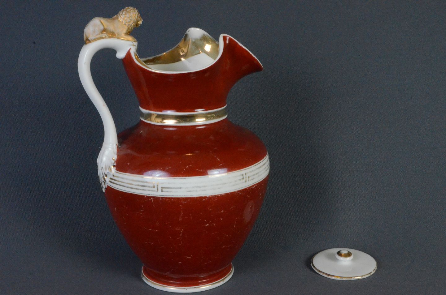 Løvekande til chokolade (hanløve), porcelæn, h: 26 cm