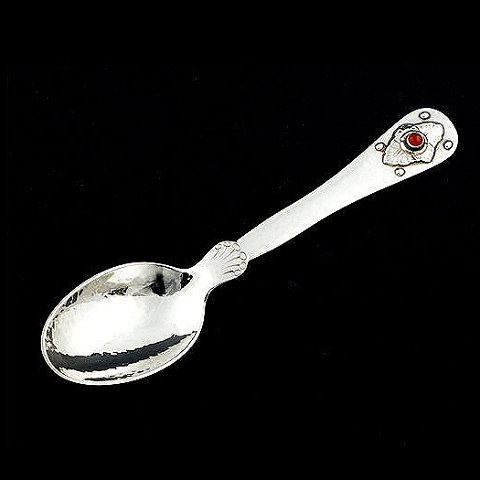Georg Jensen. 75 års Jubilæums barneske. i sterling sølv med karneol.