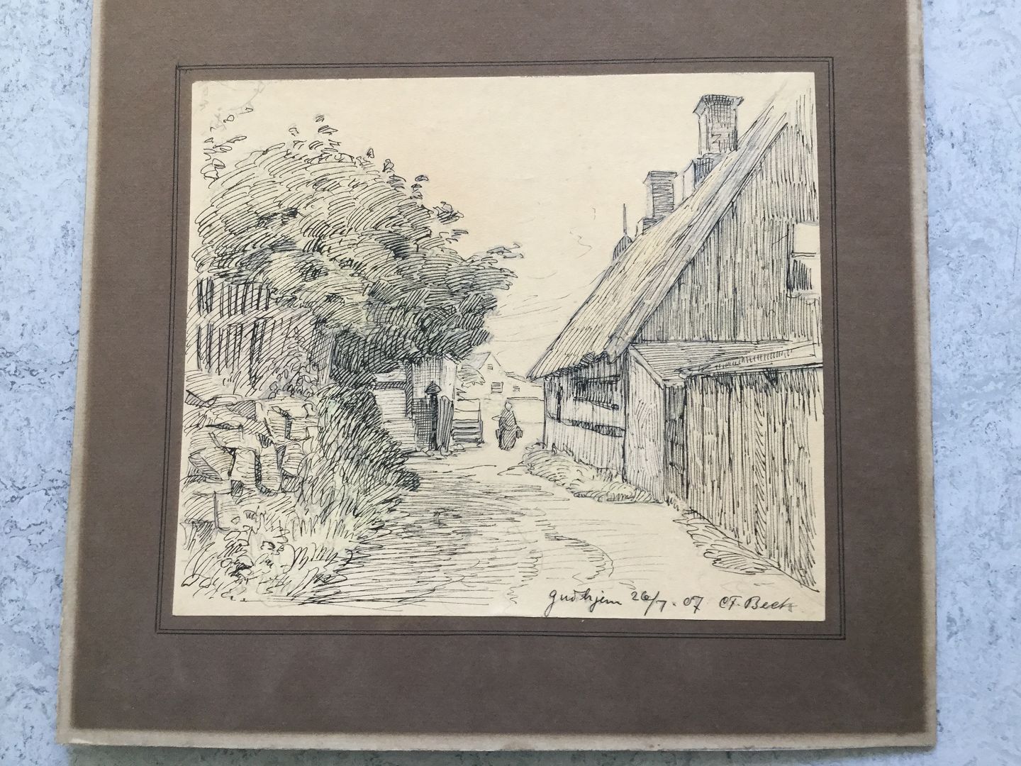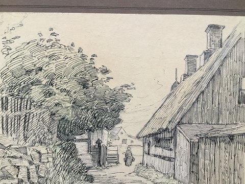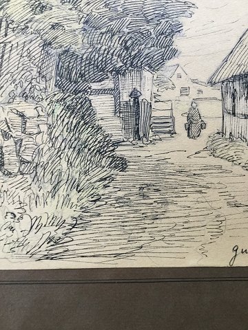 Tegning af Chr. F. Beck - Gadeparti fra Gudhjem på Bornholm 1907.
