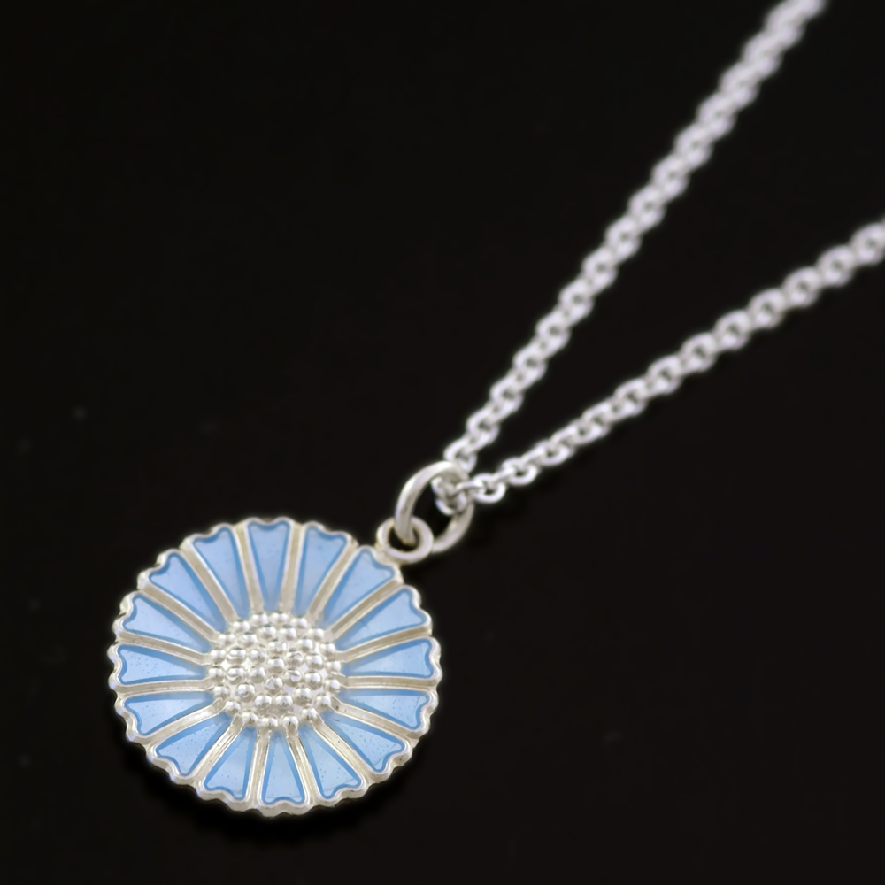 Bernhard Hertz. Marguerit / Daisy Vedhæng i Sterling sølv med blå emalje.