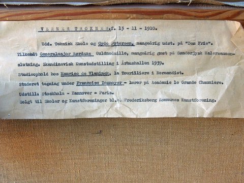 Olie på lærred. Stilleben maleri af Verner Trokner, f. 1910.
