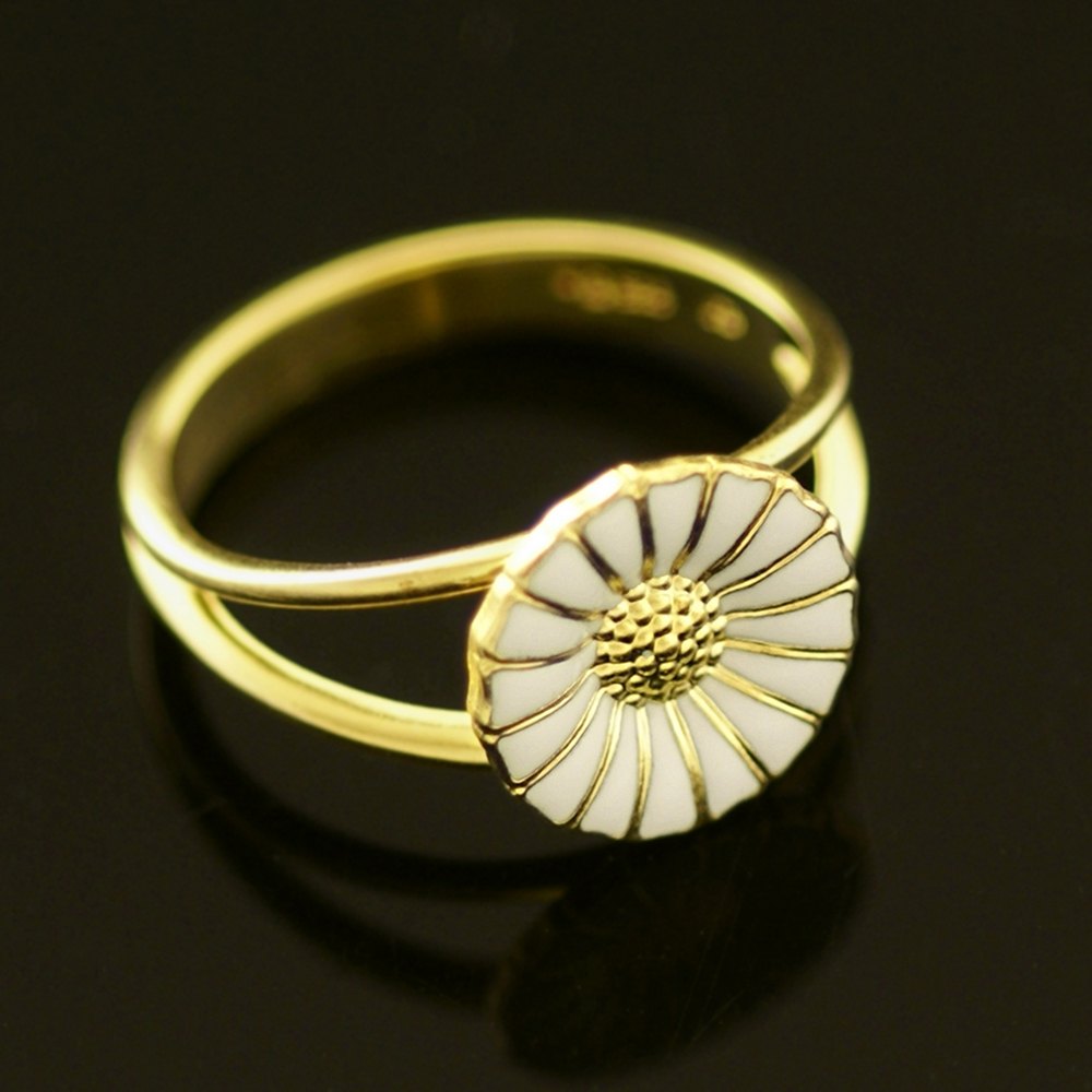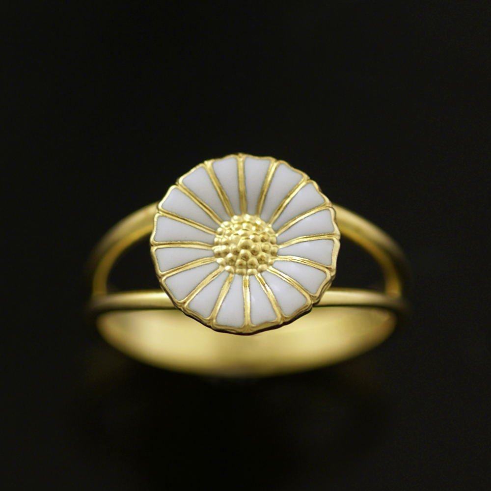 Bernhard Hertz. Marguerit / Daisy Ring i forgyldt Sterling Sølv med hvid emalje.