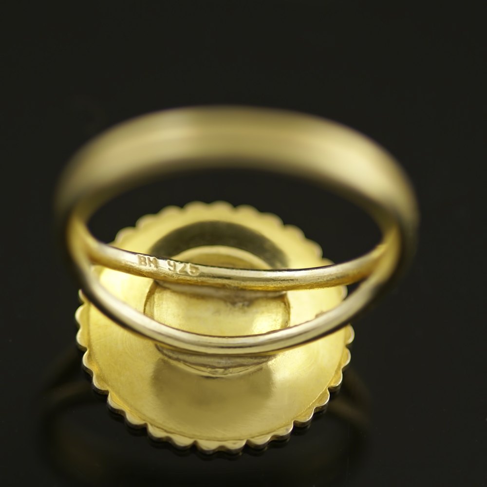 Bernhard Hertz. Marguerit / Daisy Ring i forgyldt Sterling Sølv med hvid emalje. 18mm