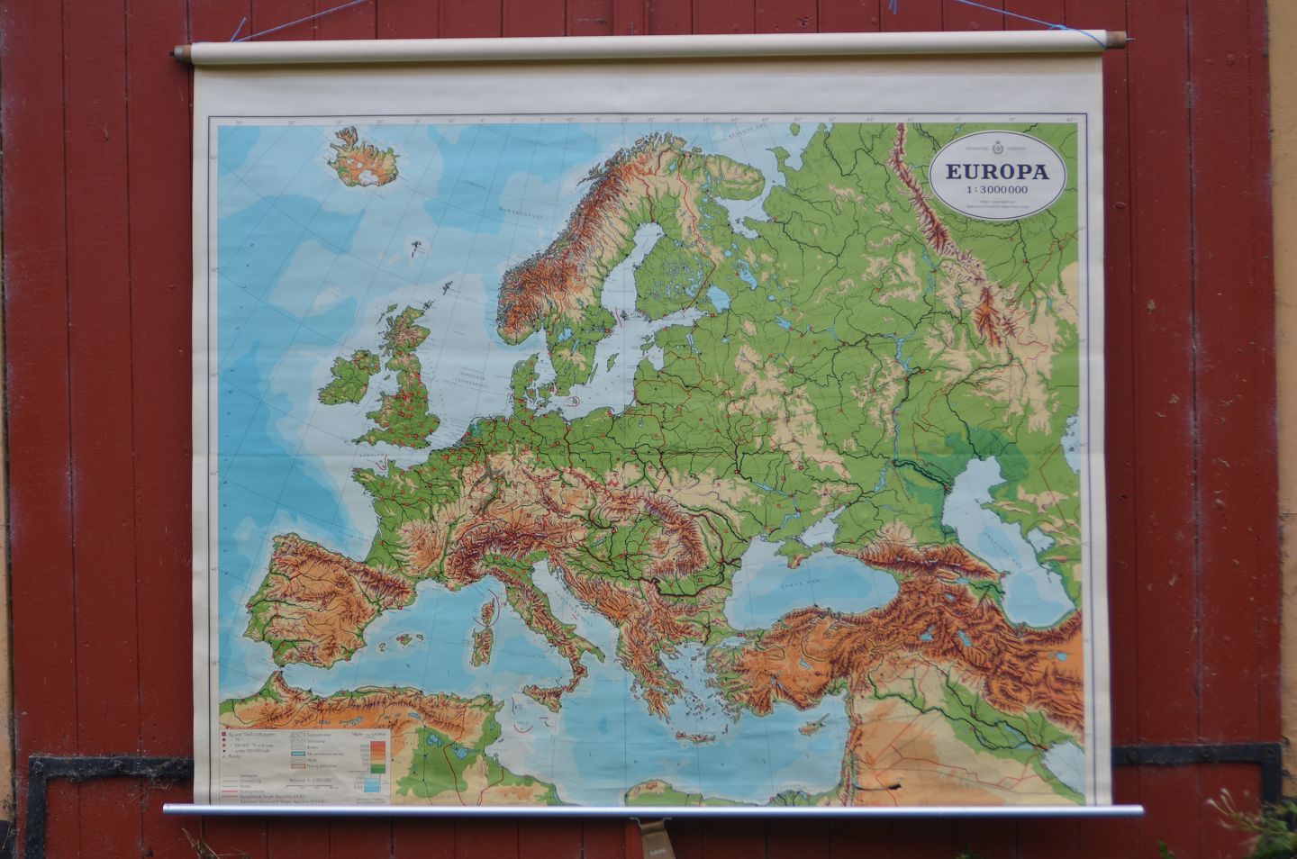 Skolekort: Europa, Monteret på selvruller og med forlænger, Kortmål: 200 x 150 cm, OBS: Hul nederst i kortet! (Skolekort nr. 3)