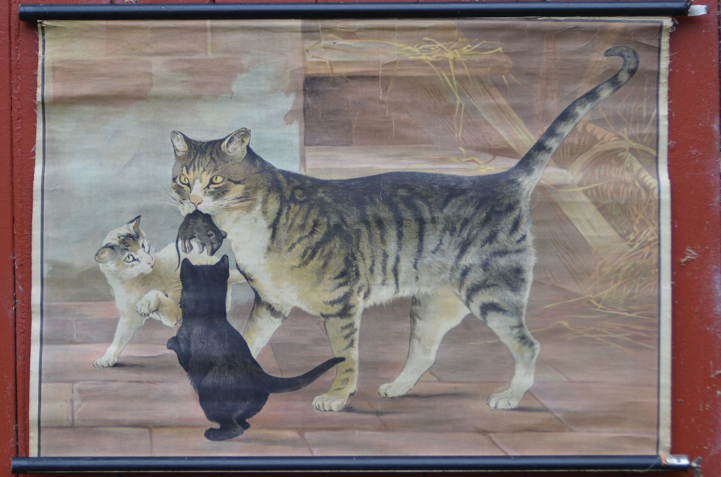 Anskuelsestavle med træstokke: Kat, Billedmål: 88 x 60 cm, (anskuelsestavle nr. 12)