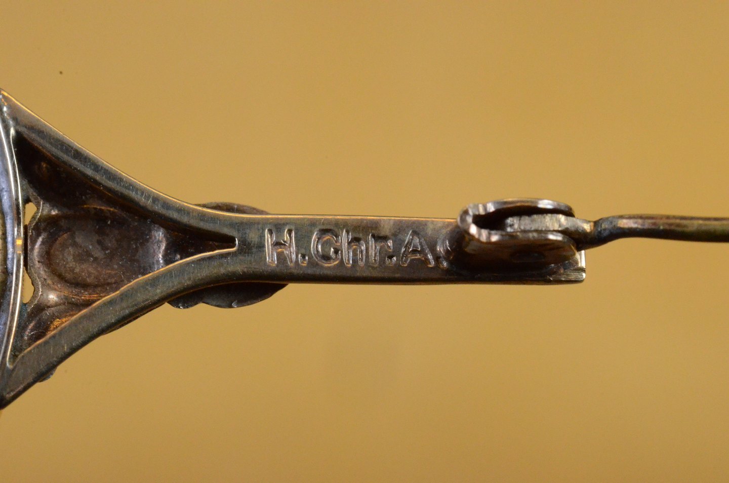 Camé nål med romersk damehoved. Guld stemplet "H.Chr. A" Hans Christian Andersen - Copenhagen 1931 - 1951. Str.: 5 cm nål, Camé 1,5*2 cm. Art No. 49