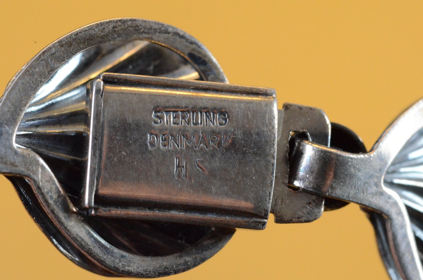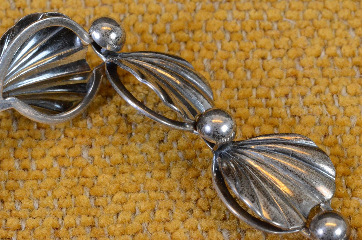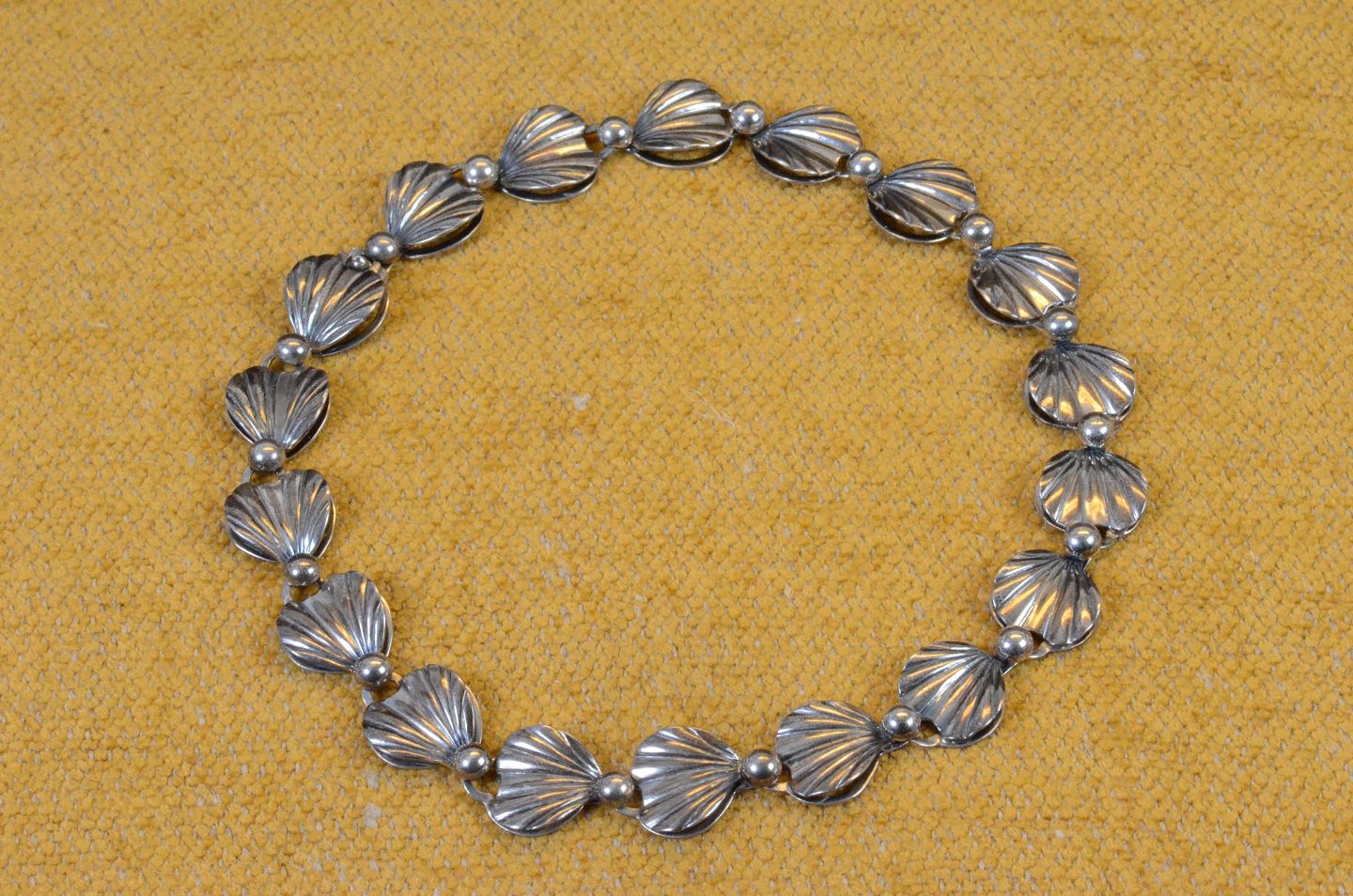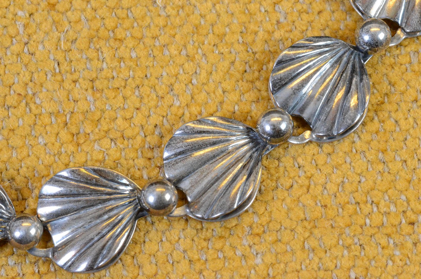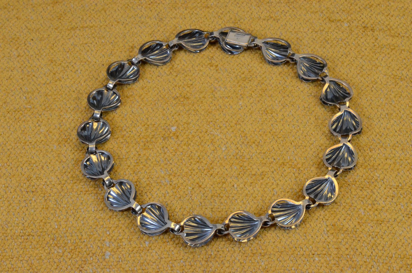 Collier halskæde sølv. Elegant formet konkave blade svævende på sølvringe, leddelt og samlet af sølvkugler. Stemplet 925 HS. Herman Siersbøll. Str.: 35 cm. Art No. 82