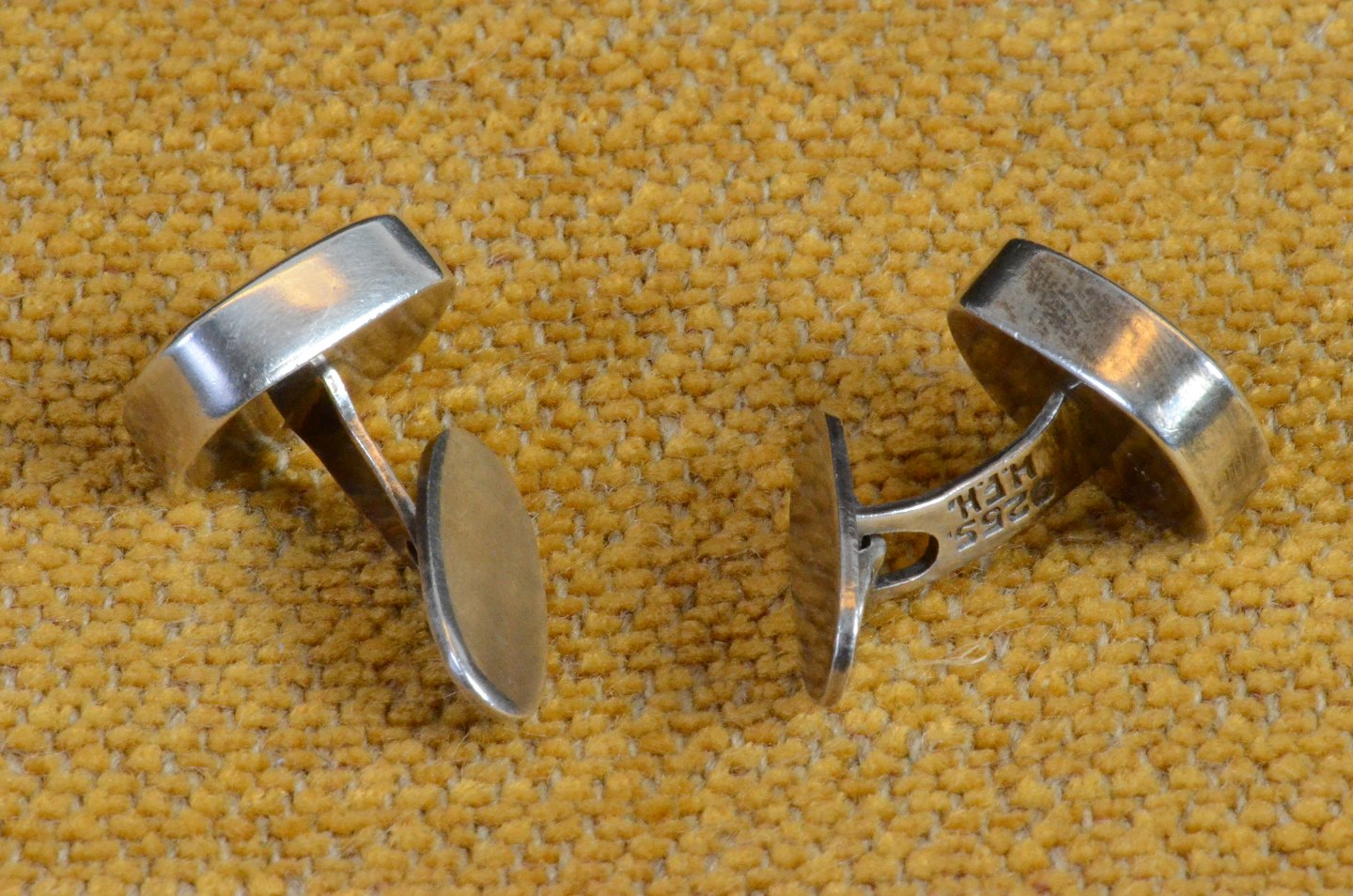 Manchetknapper med onyx. Stemplet 925S HFH (.Hans Fr. C. Holm - Hobro 1944 - 1992) Str.: 1,5*1,3 cm. Art. No. 100