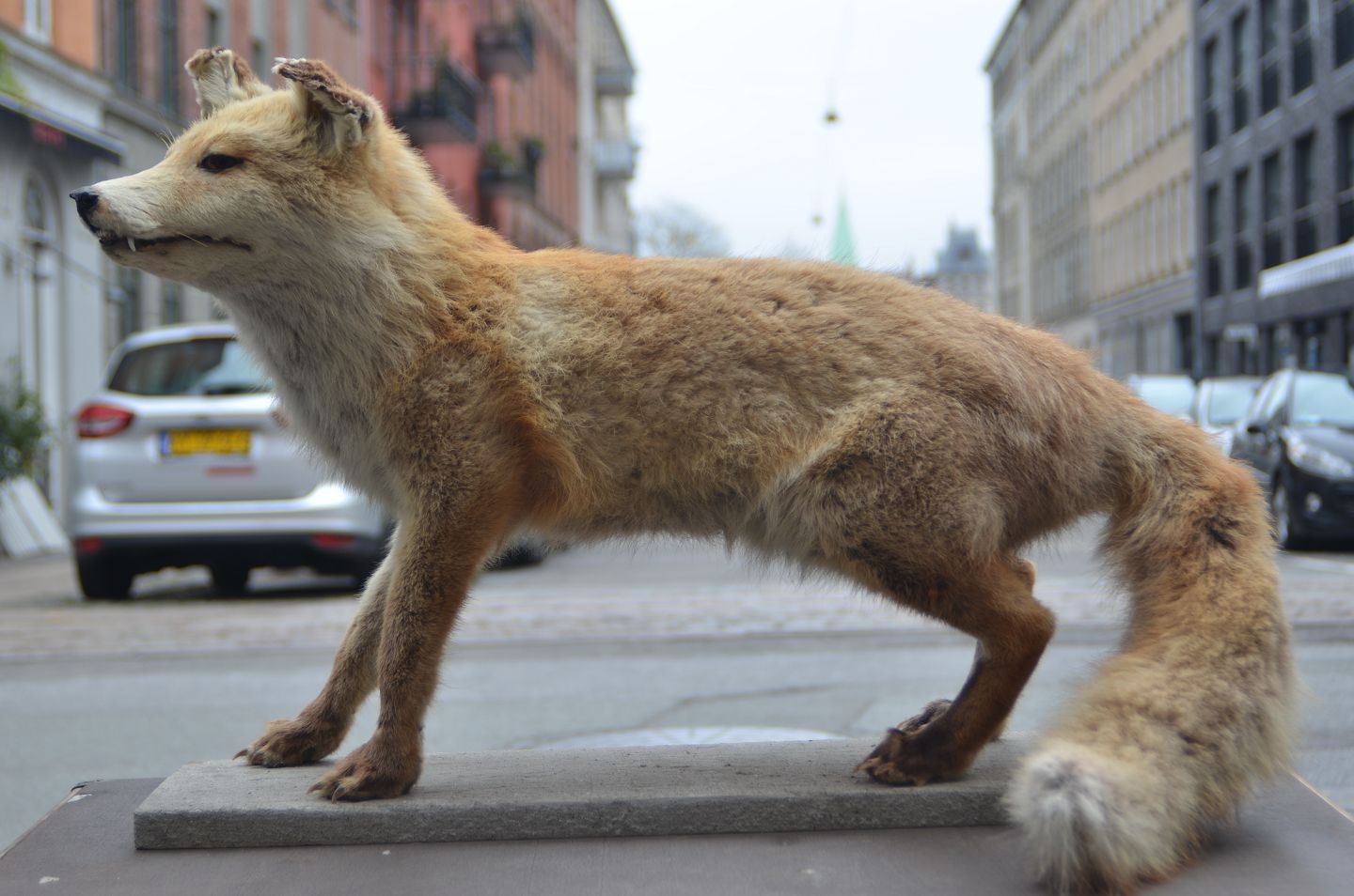 Udstoppet ræv, l: 74 cm, b: 38 cm
