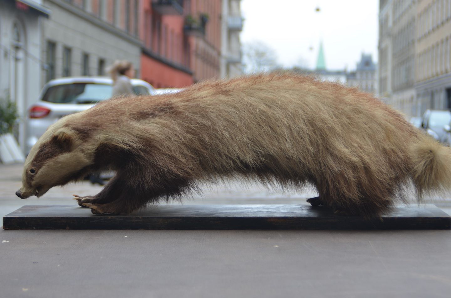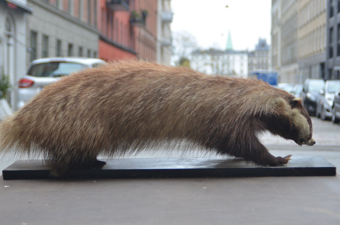 Udstoppet grævling, l: 80 cm, b: 26 cm