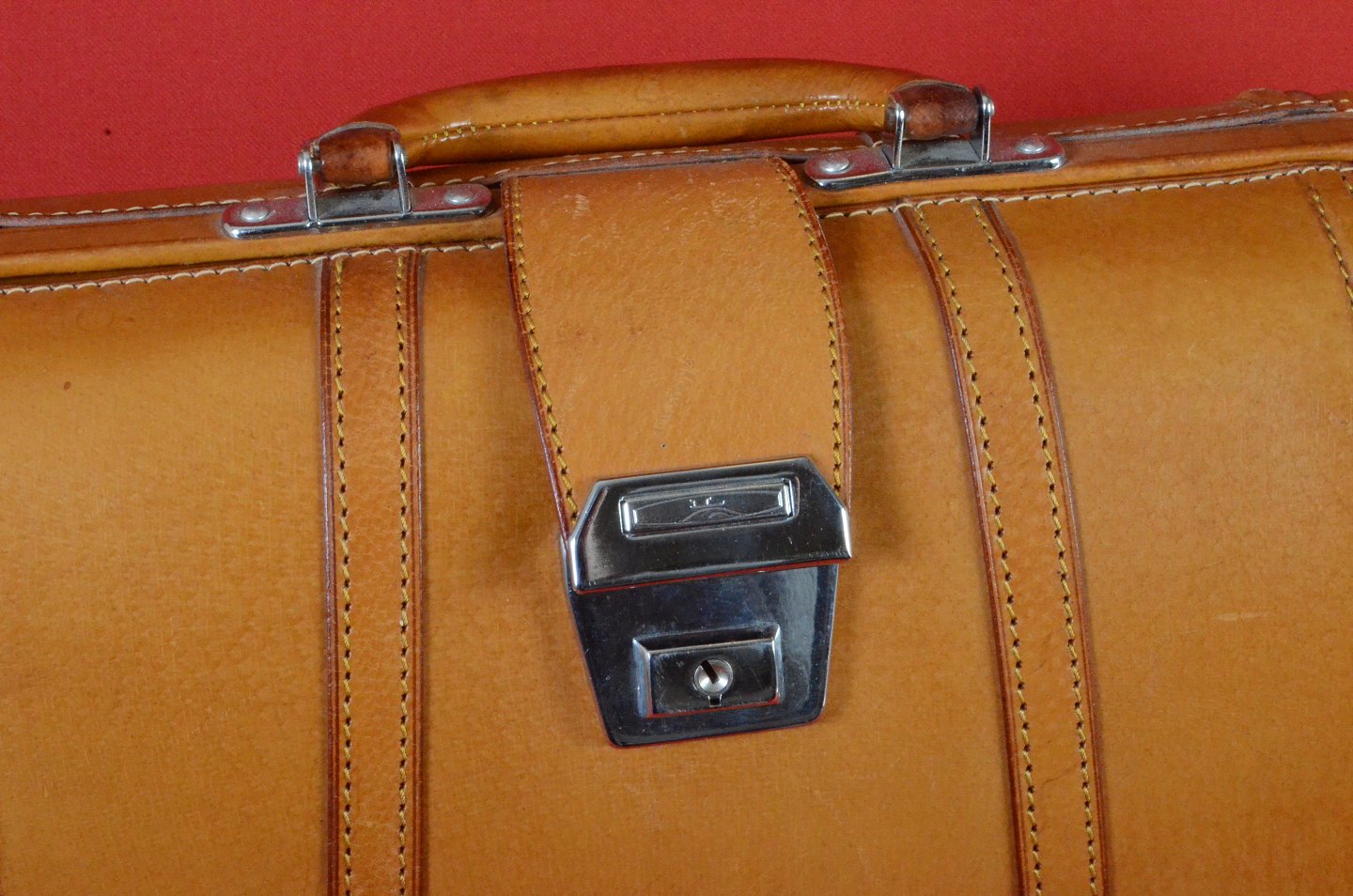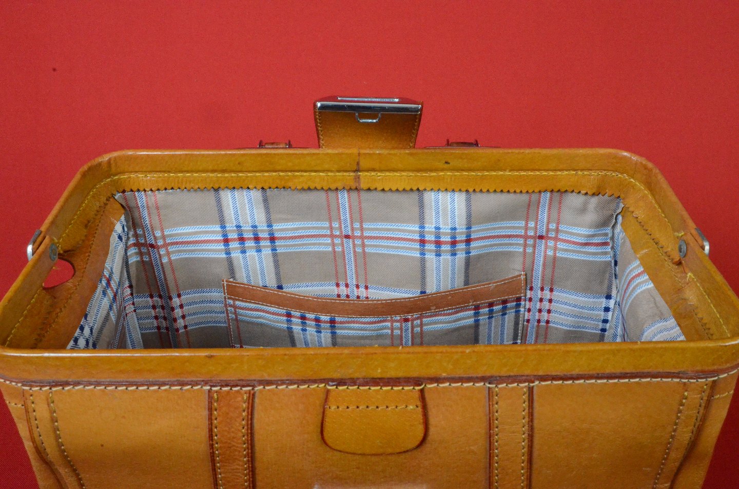 Rejsetaske af skind og stof, h: 24 cm, l: 37 cm