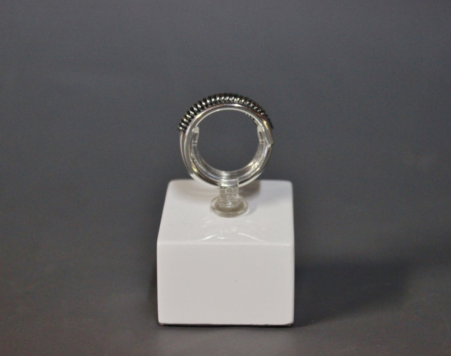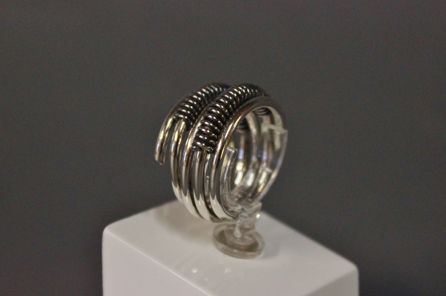 Dobbelt sølvring med fjeder af oxideret sølv.