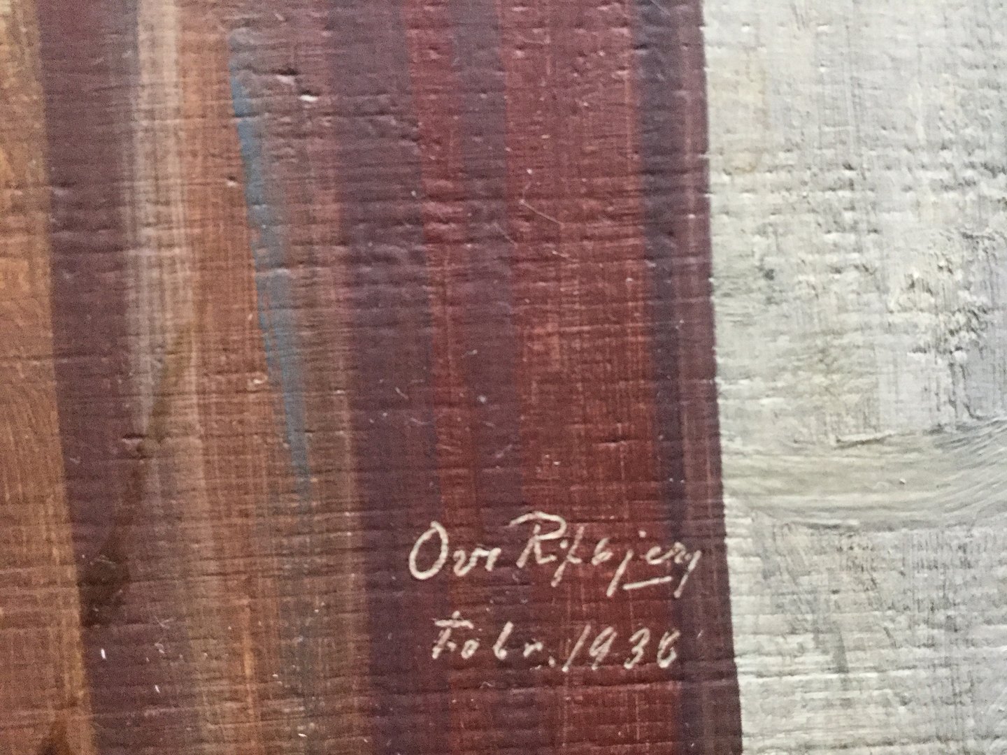 Maleri af Ove Rifbjerg - Opstilling på kommode med tulipaner i vase.