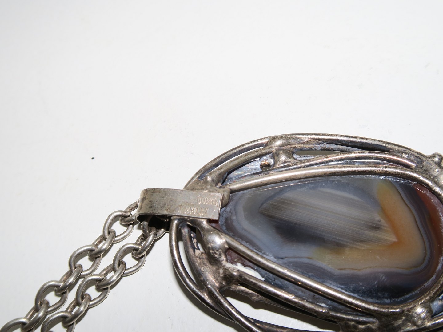 The pendant measures 7.0 by 4.8 cm., the chain measures 68 cm.