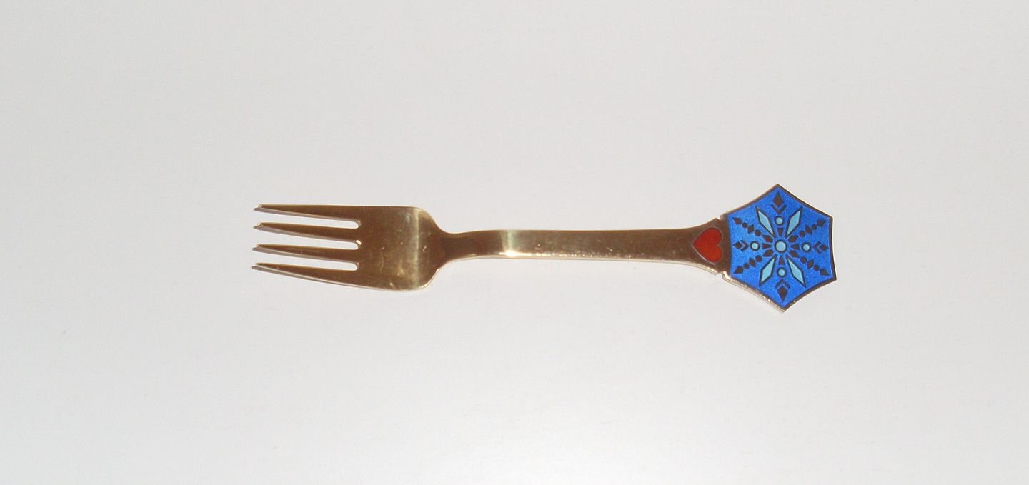 A.Michelsen julegaffel i forgyldt sterlingsølv og emalje fra 1976