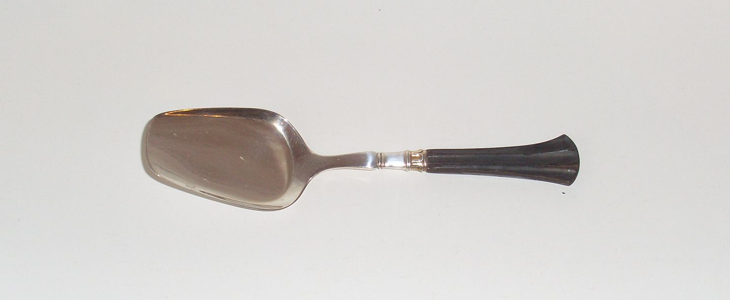 Carl M. Cohr serverings spade i sølv med skaft i træ.
