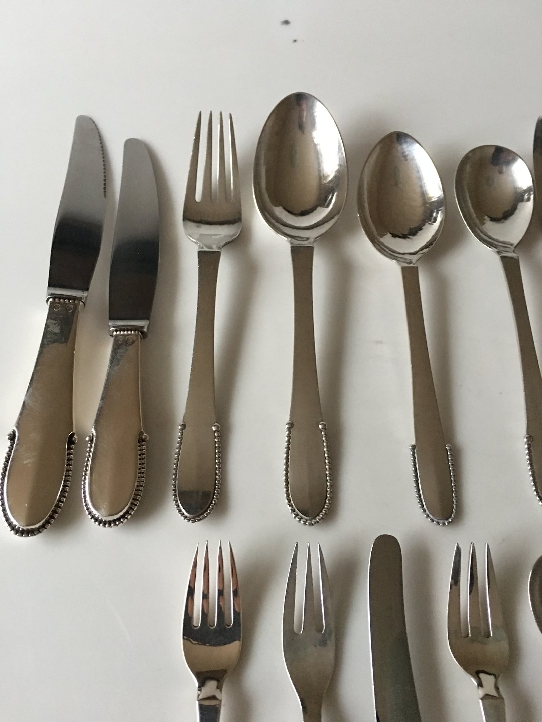 Georg Jensen Sterling Silver Beaded Flatware Set for 4 pers. 56 Pieces