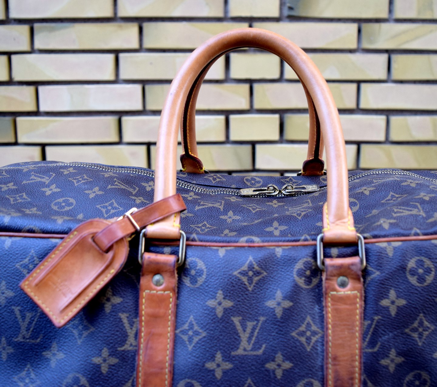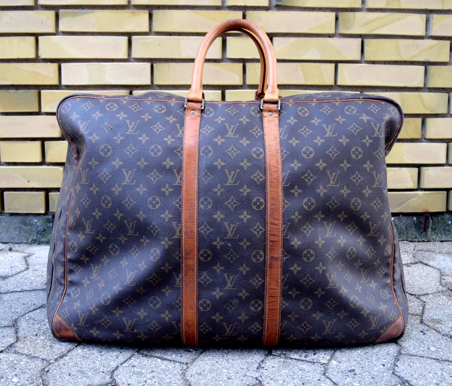 Louis Vuitton: "Alize" rejsetaske af monogram kanvas med to læderhanke