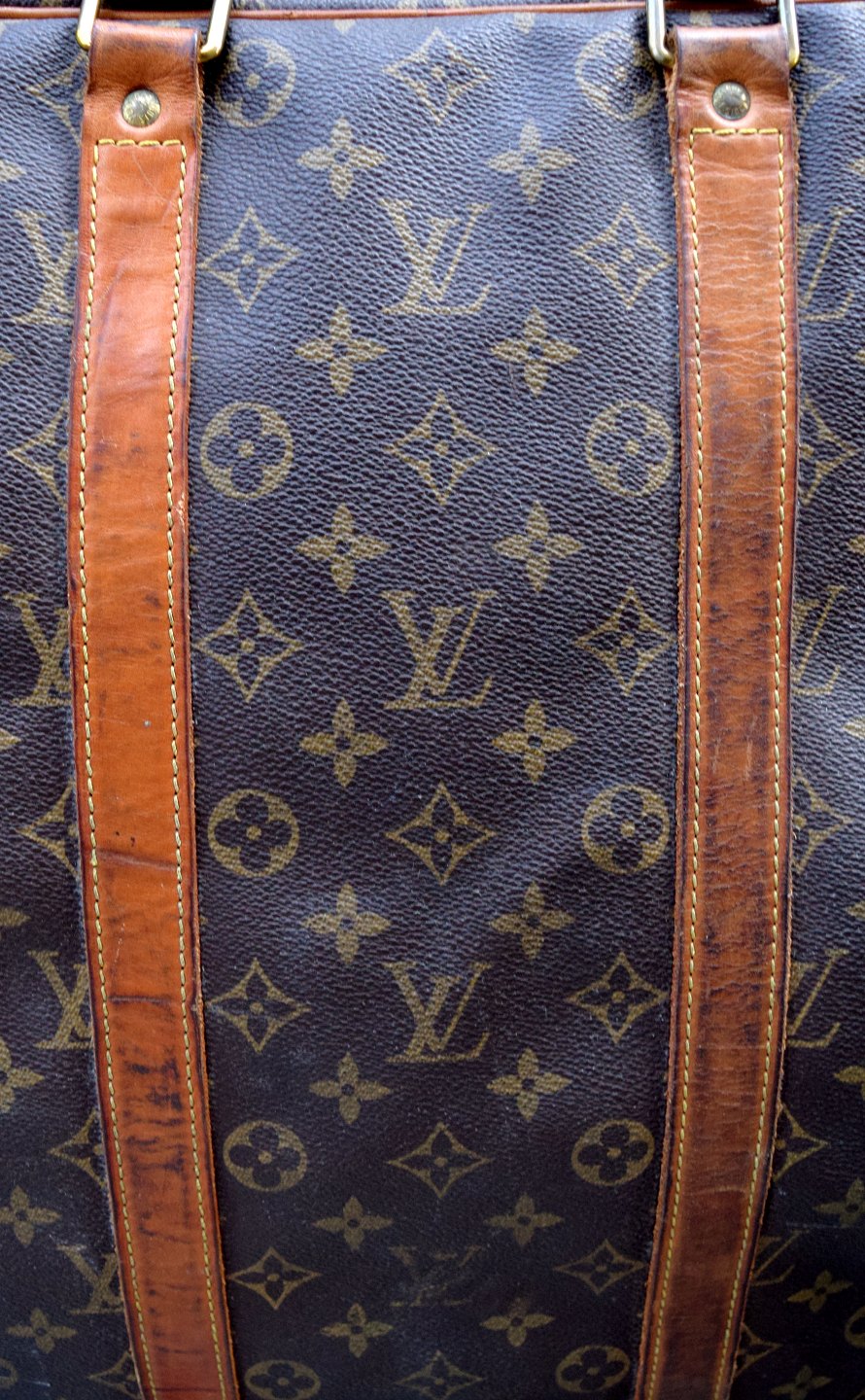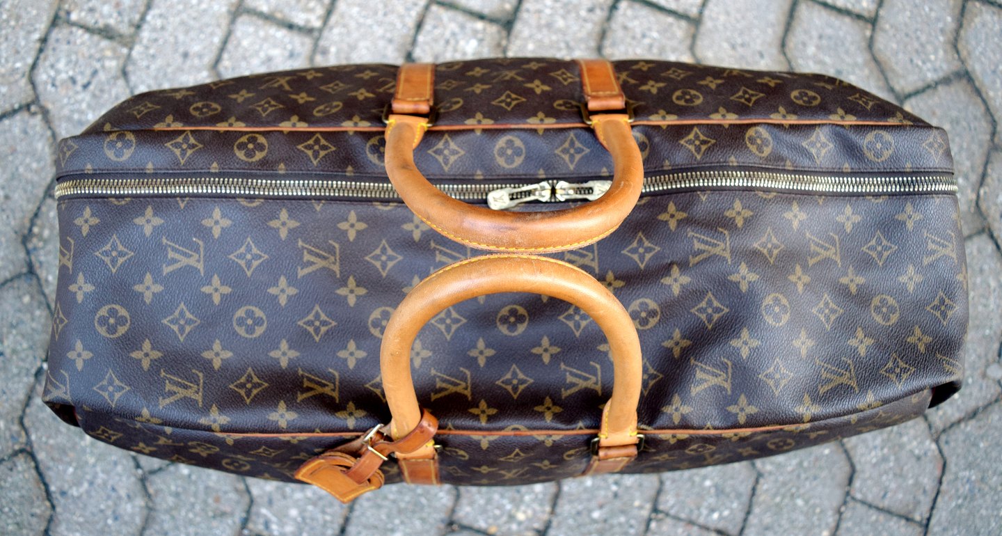 Louis Vuitton: "Alize" rejsetaske af monogram kanvas med to læderhanke, lyse læderbesætninger, aftageligt navneskilt af lys kernelæder, messingbeslag, et stort lynlåsrum med indvendige elastikstropper.