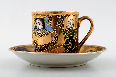 Satsuma, egoist tesæt. Dekoreret med personer på guld.