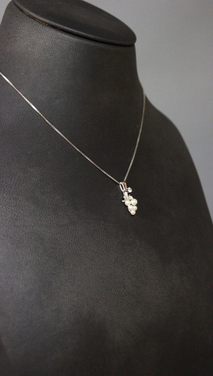 14 ct. with pendant with 6 small Pearls and small diamond, stamped KH.