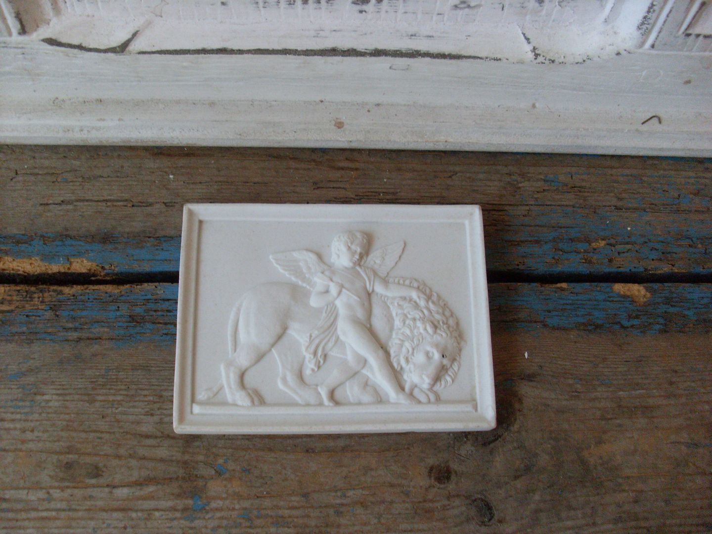 B&G biscuit plakette "Amor med den tæmmede løve"