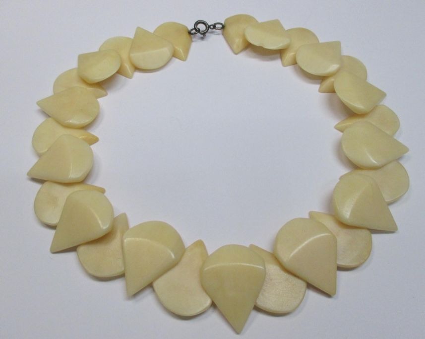 Grønlandsk hals kæde af ben, 20. årh. Længde: 34 cm. Bestående af 27 hjerteformede dele.