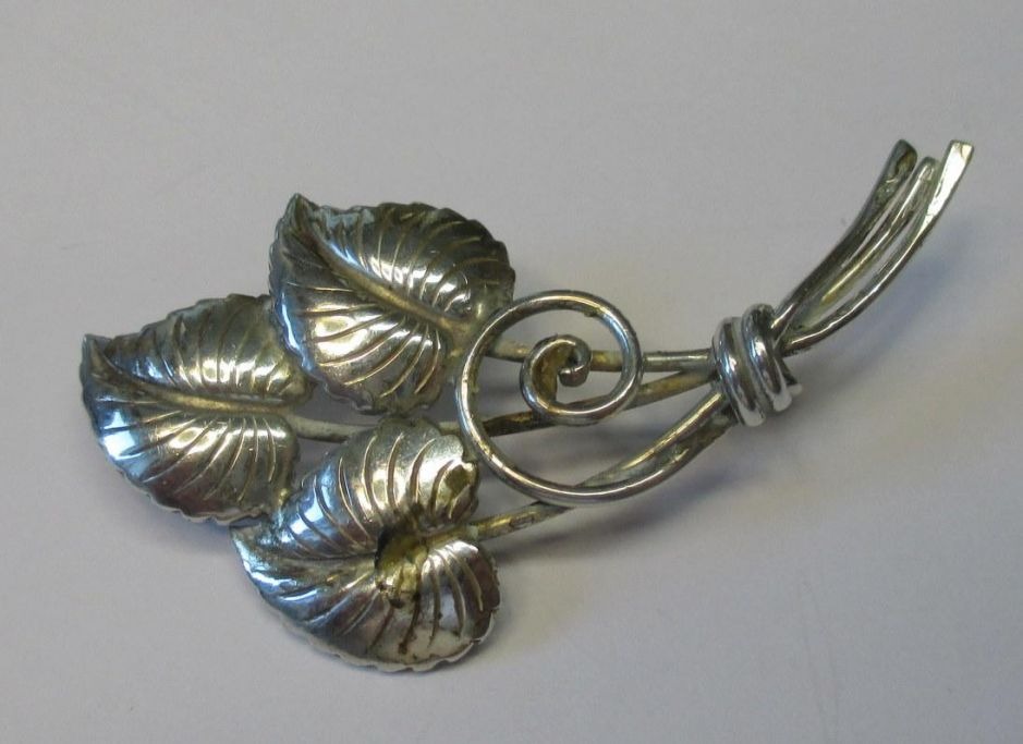 Sølv brosche - gren med blade - Herman Siersbøl, København, Danmark (efter 1948).