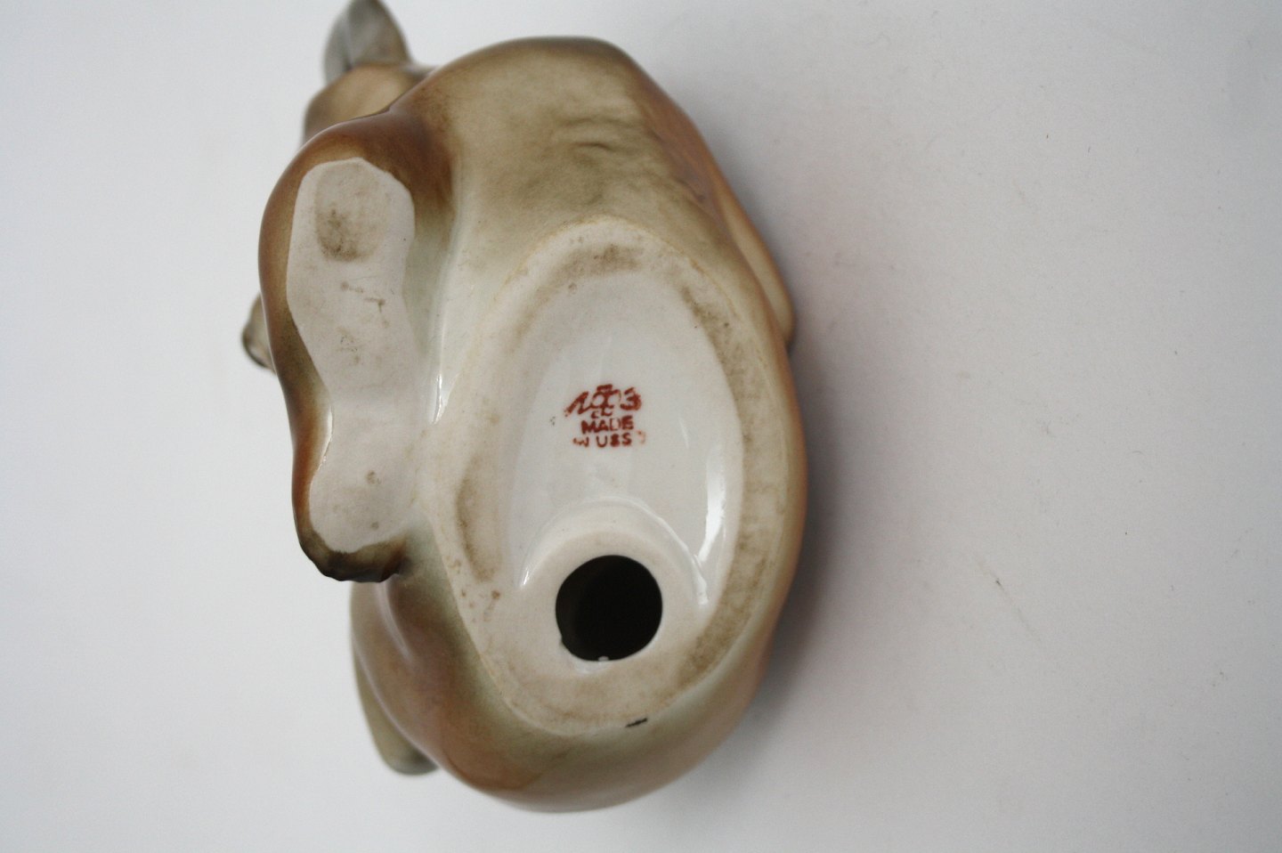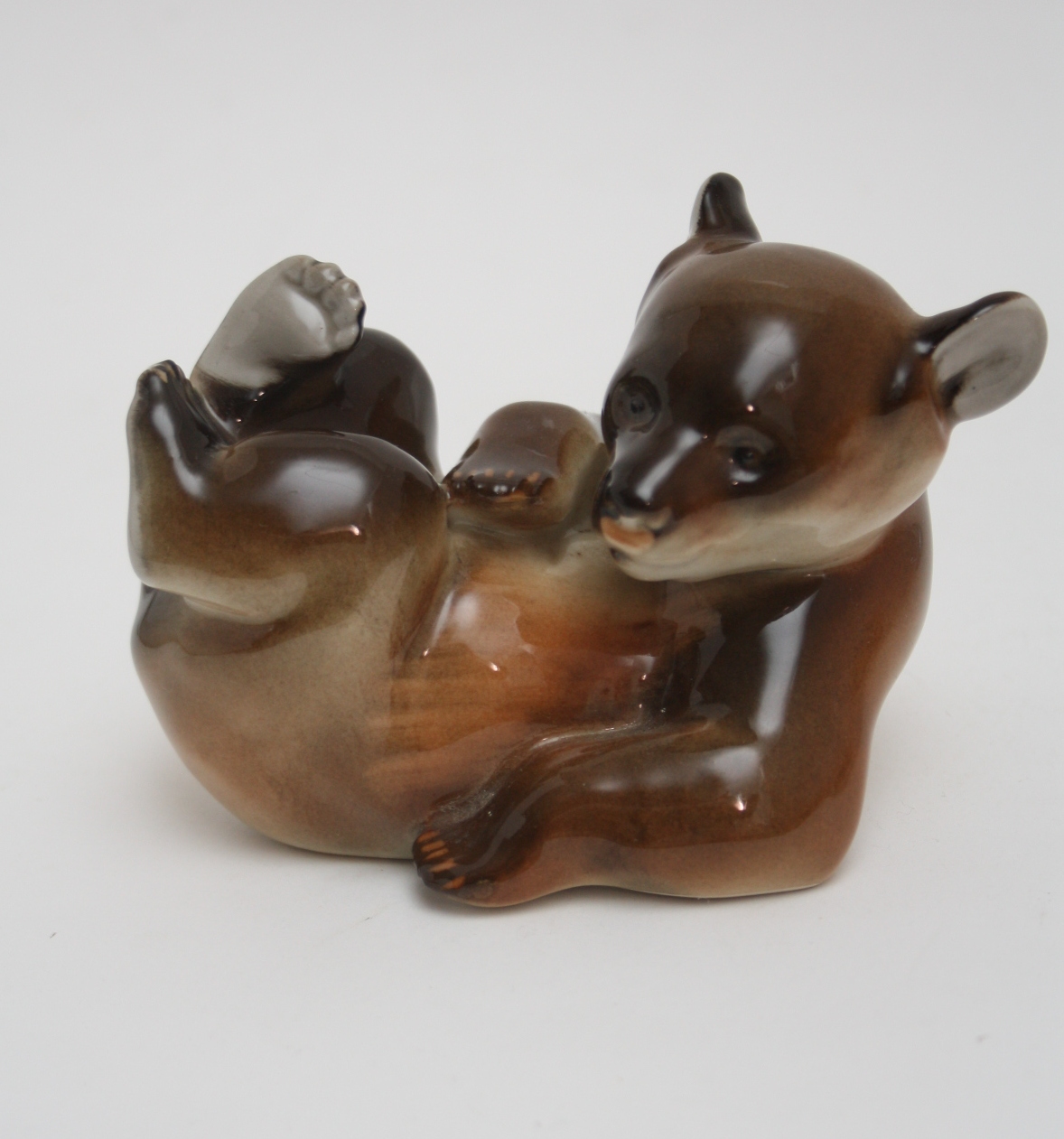 Brun glaseret bjørn made in USSR. Højde 8 cm. Længde 13,5 cm. Pris: 400 kr.