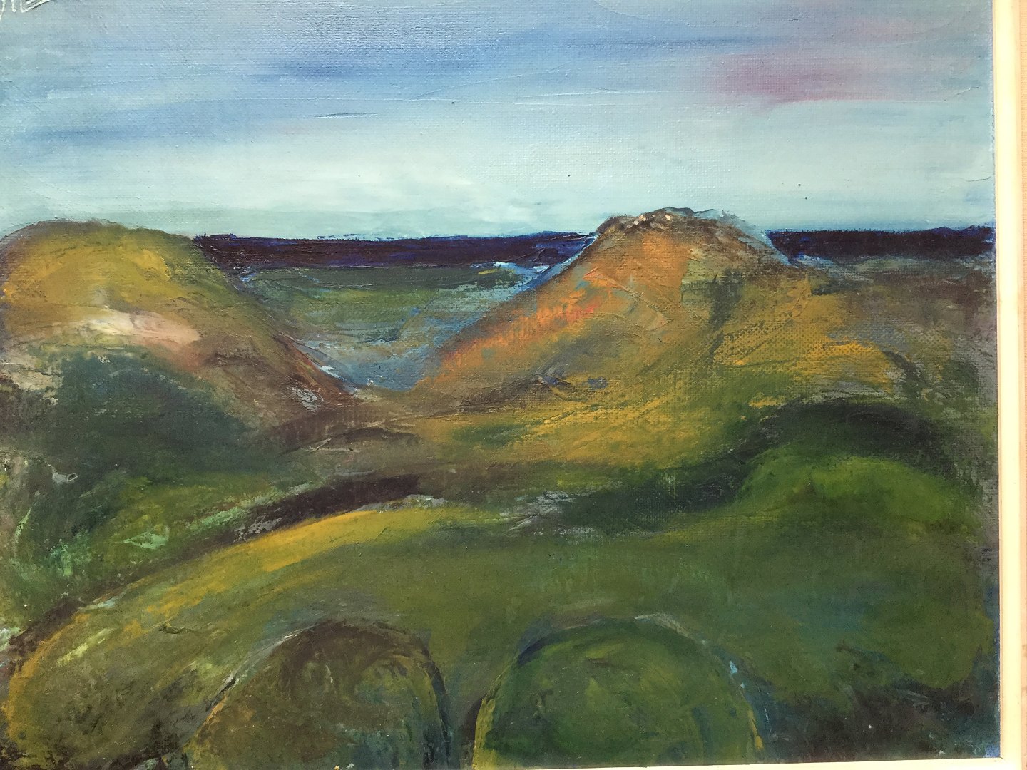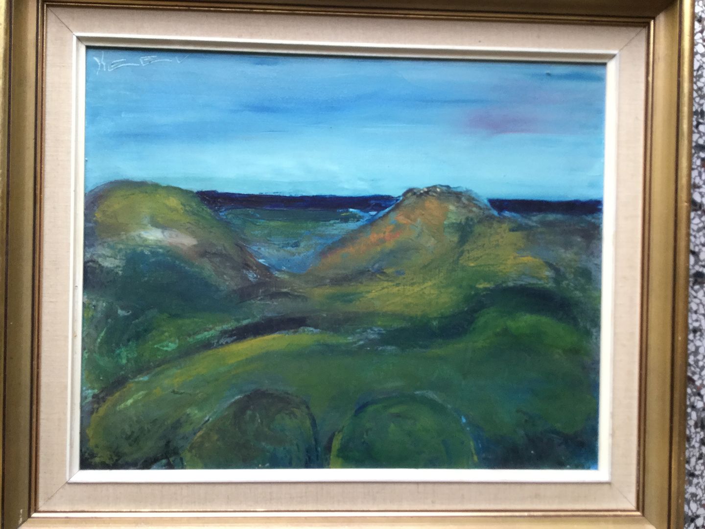 Smukt maleri - landskab ved havet signeret KEEV.