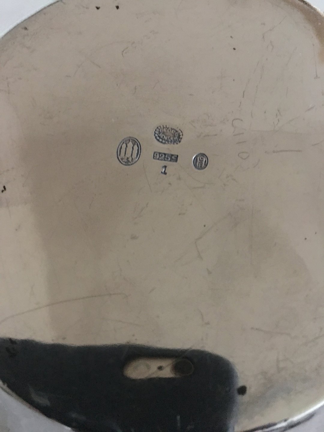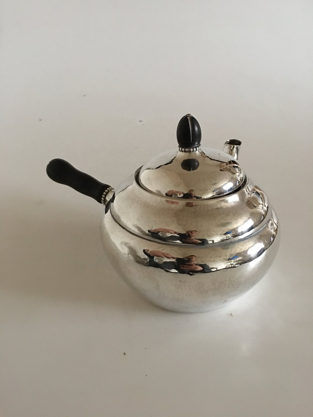 Georg Jensen Sterling Sølv Tekande No 1A med Ibenholdt. Fra 1915-1930. 10 x 13.5 cm. Vejer 342 gram.