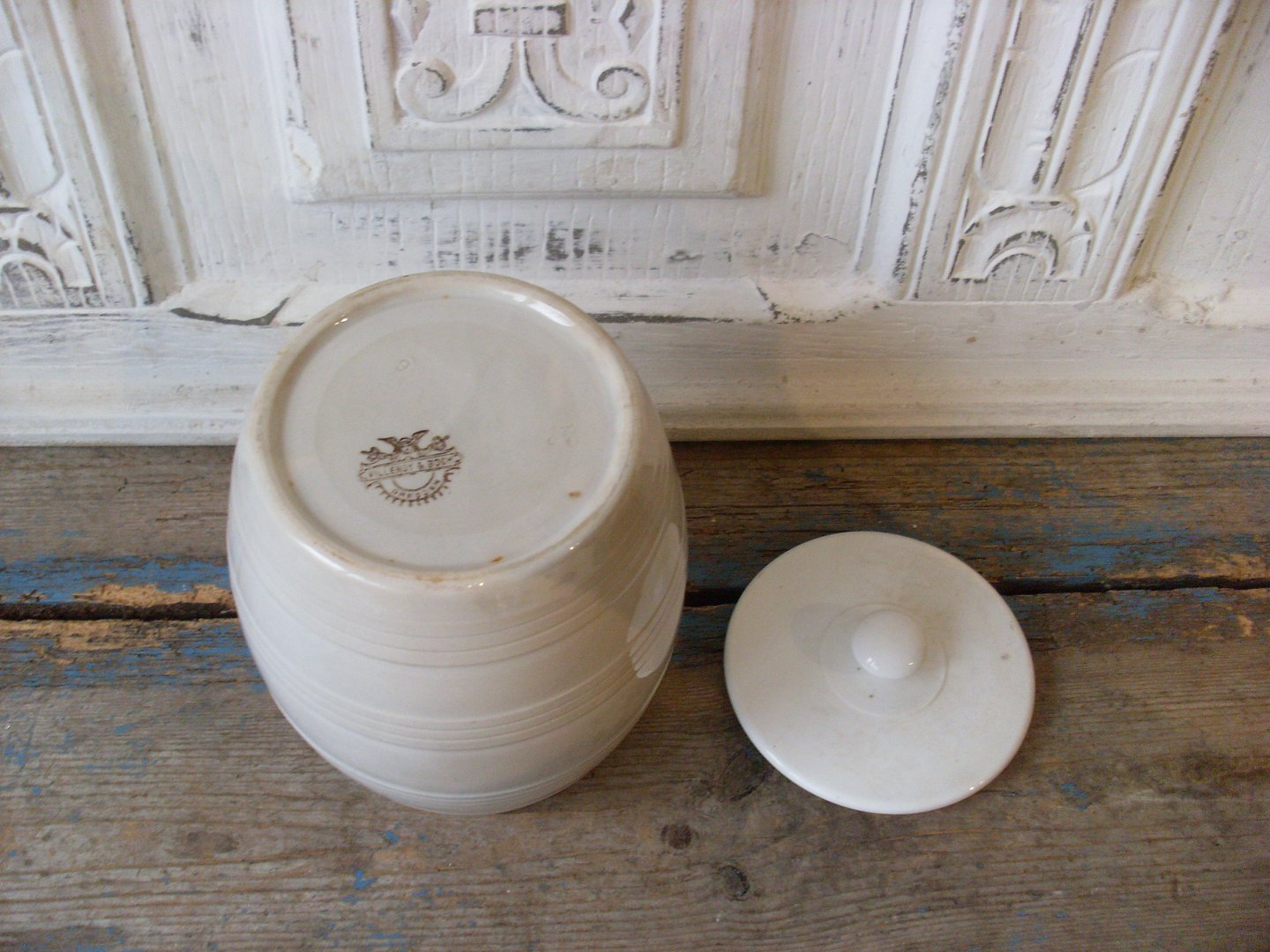 Villeroy & Boch fajance tønde med teksten "Sagomeel"