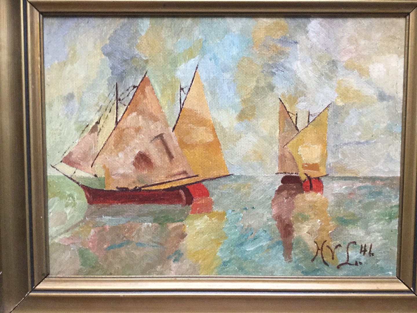 Bagpå label med informationer om maleren Hans von Loesch, men jeg tror ikke det er ham der har malet maleriet.