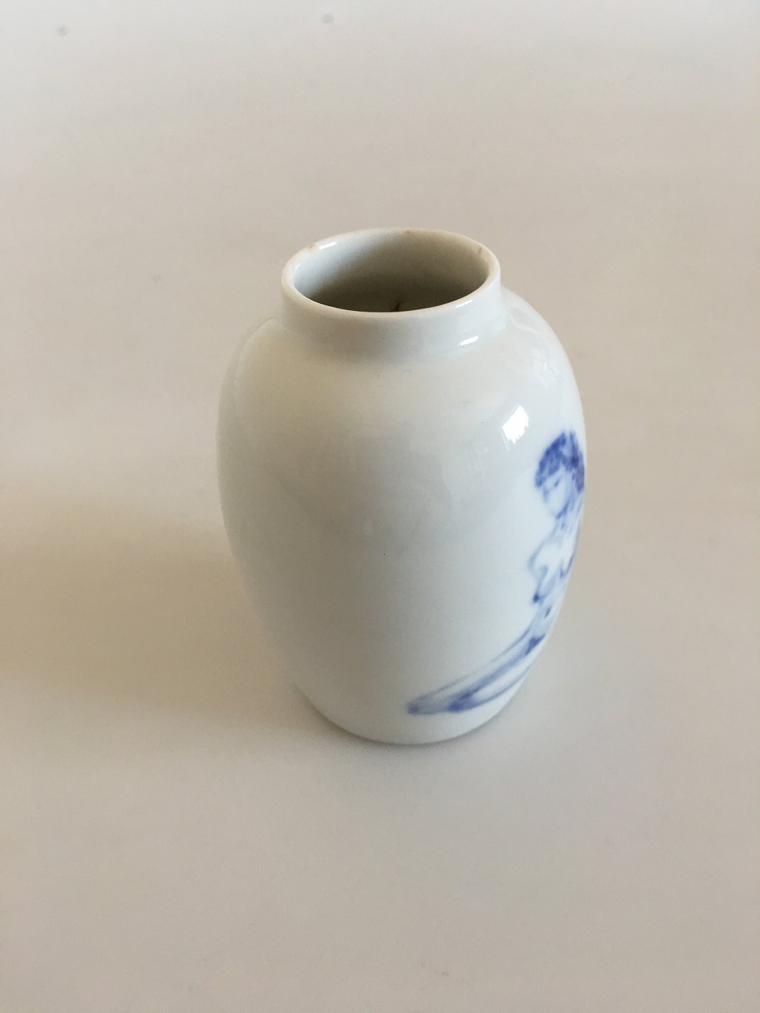 Royal Copenhagen Lille Unika Vase med Motiver af Siddende Nøgen Dame. 9 cm H. I perfekt stand