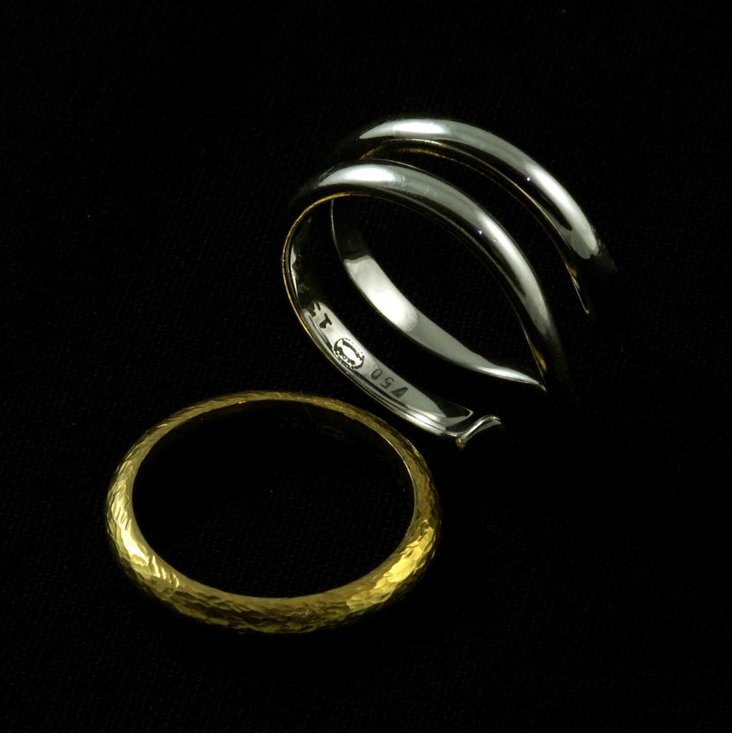 Begge ringe stemplet med efter-1945 GJ stempler og 750